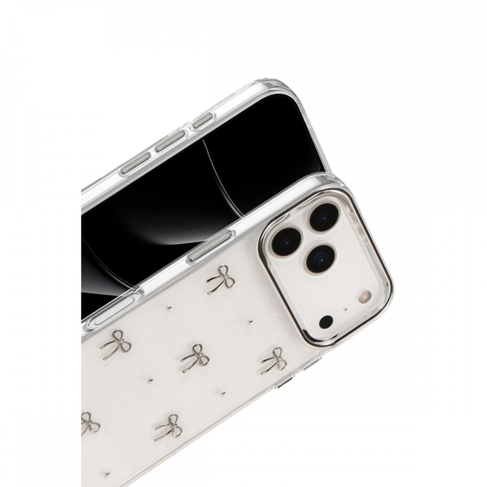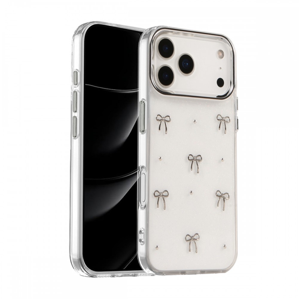 iPhone 17 Pro Kılıf Fiyonk Desenli Şeffaf Kapak