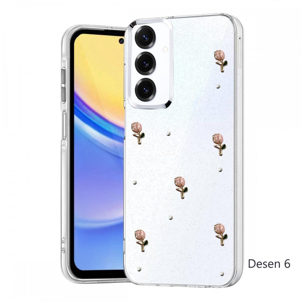 Zarafet ve Koruma Bir Arada Fiyonk, yıldız, kelebek, lale, çiçek, kalp ve gül gibi zarif detaylarla süslenmiş bu kapak; simli, şeffaf tasarımıyla estetik ve korumayı bir araya getiriyor. Telefonunuzu yalnızca dış etkenlerden korumakla kalmaz, aynı zamanda ona göz alıcı bir stil kazandırır. Günlük kullanımda dikkat çeken tasarımı sayesinde cihazınızın şıklığı öne çıkar. Üstün Darbe Koruması Esnek kenar yapısı ve dayanıklı malzemesiyle telefonunuzu darbelerden ve düşmelerden etkili bir şekilde korur. Simli şeffaf yüzey, hem sağlamlık hem de görselliği bir arada sunarak cihazınızın orijinal görünümünü sergilemeye devam eder. Konforlu ve Pratik Kullanım İnce ve hafif tasarımıyla telefonunuzu kalınlaştırmadan yüksek koruma sağlar. Tüm tuşlar, bağlantı noktaları ve kamera çıkıntılarıyla tam uyumludur. Kaymaz yüzeyi sayesinde elde daha güvenli bir tutuş sunar; böylece günlük kullanımda rahatlık ve konfor sağlar.Fiyonk Desenli Kapak
