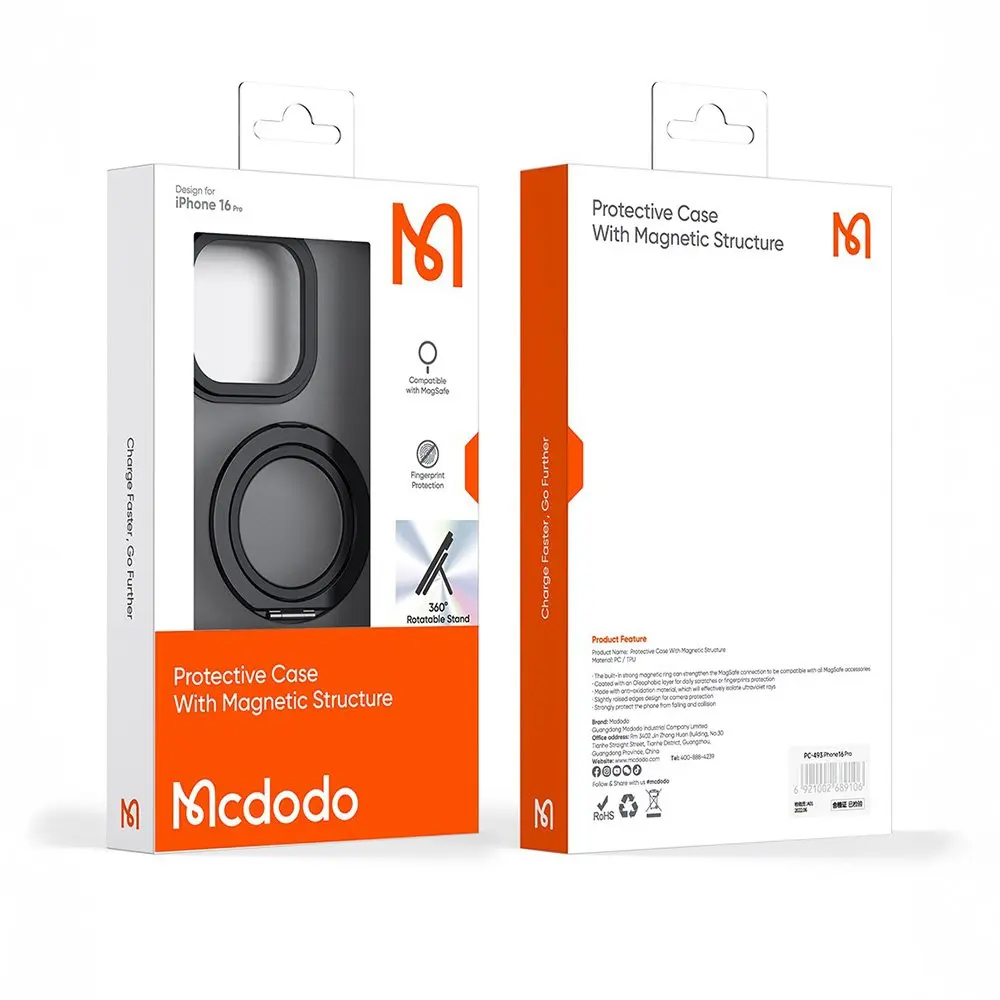 Mcdodo PC-4932 iPhone 16 Pro Kılıf Halka Standlı Kapak - Siyah