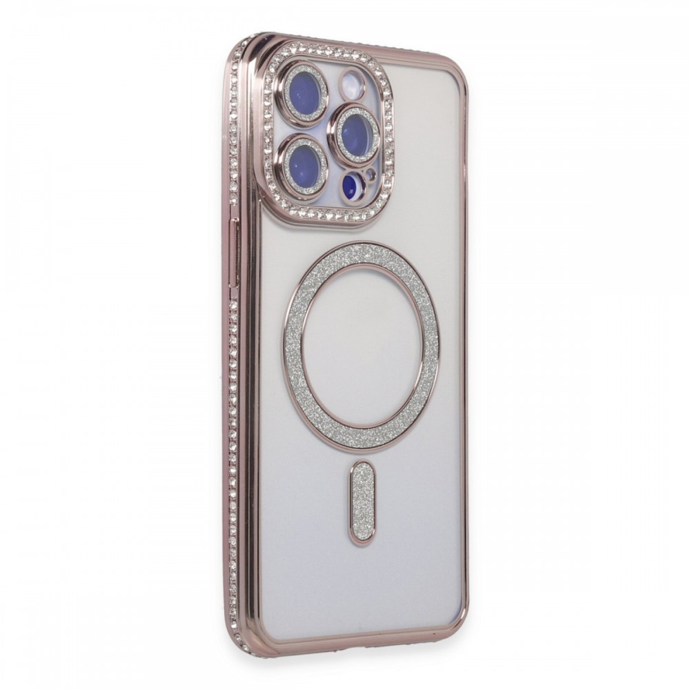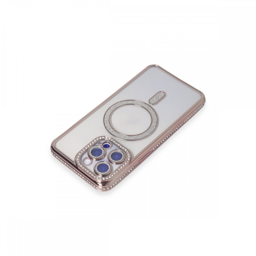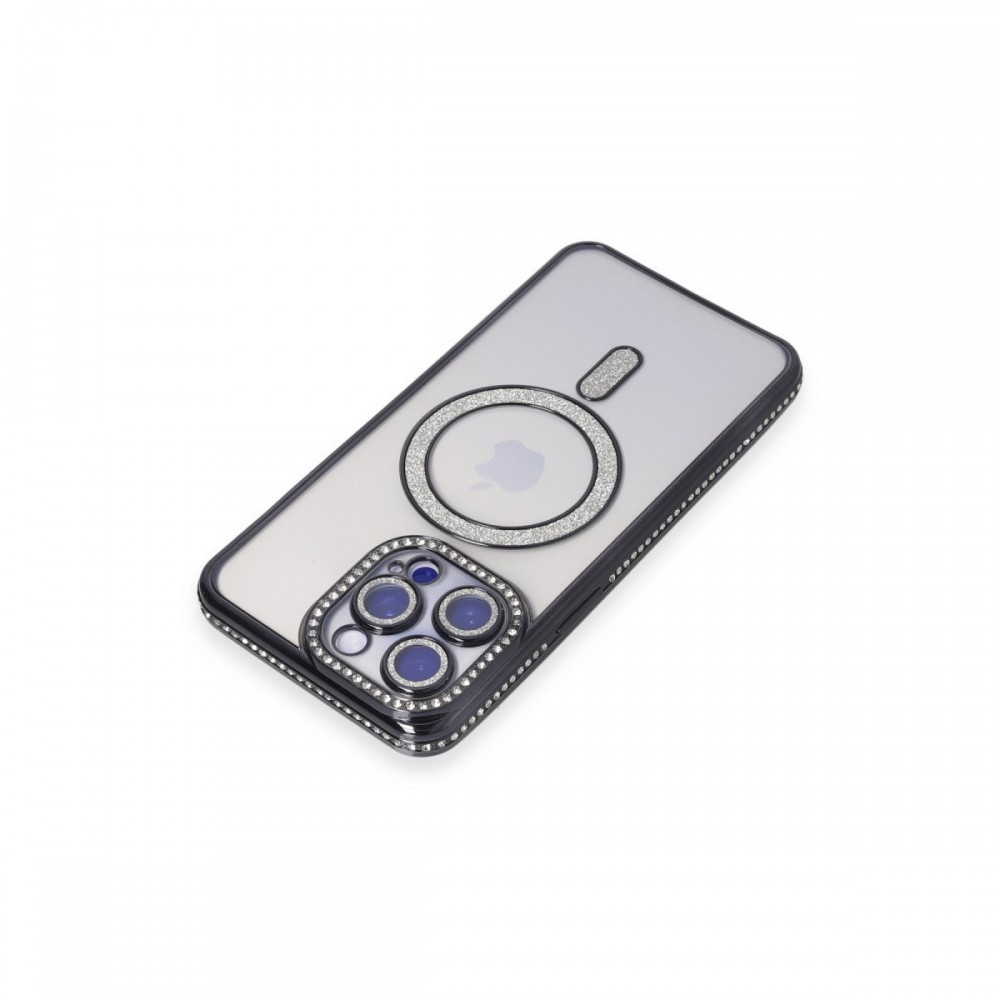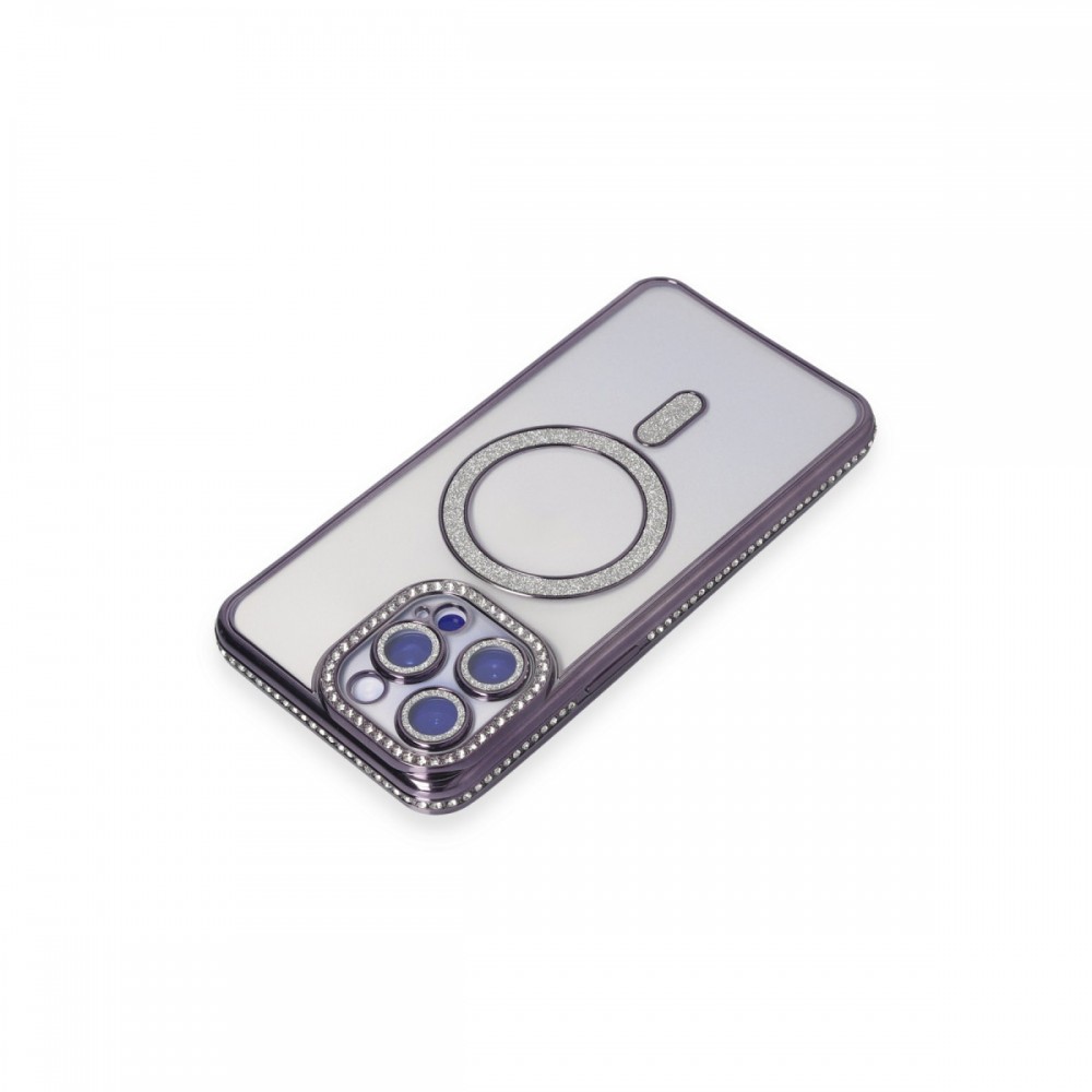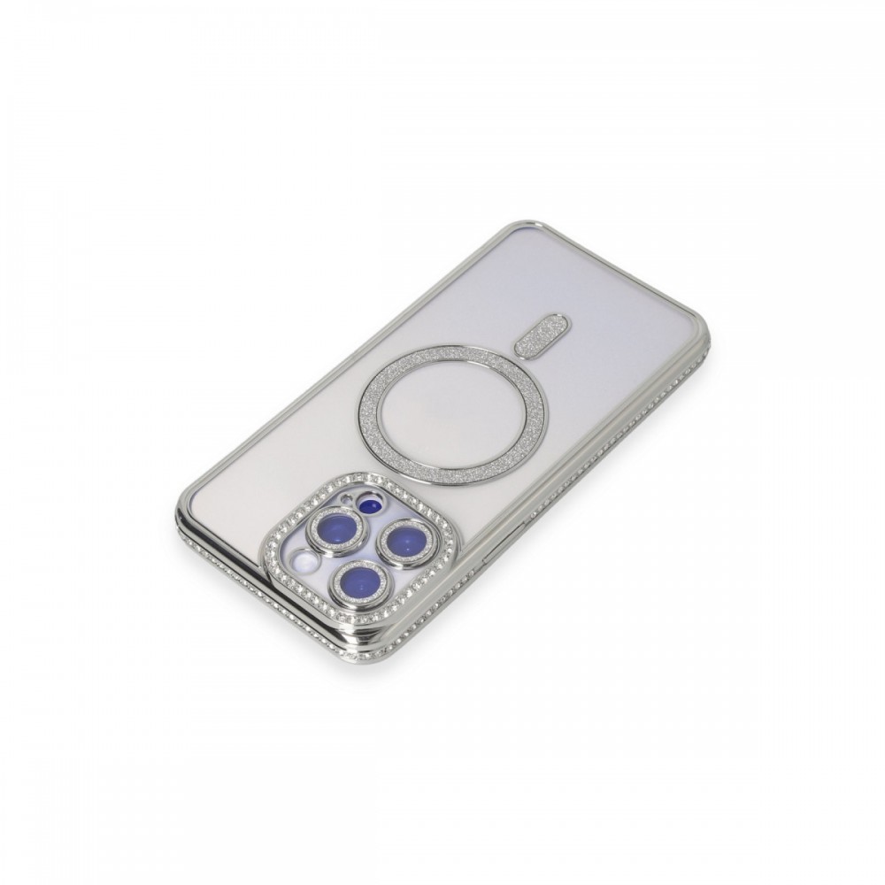 iPhone 15 Pro Max Kılıf Joke Seri Magsafe Özellikli Taşlı Simli Silikon Kapak