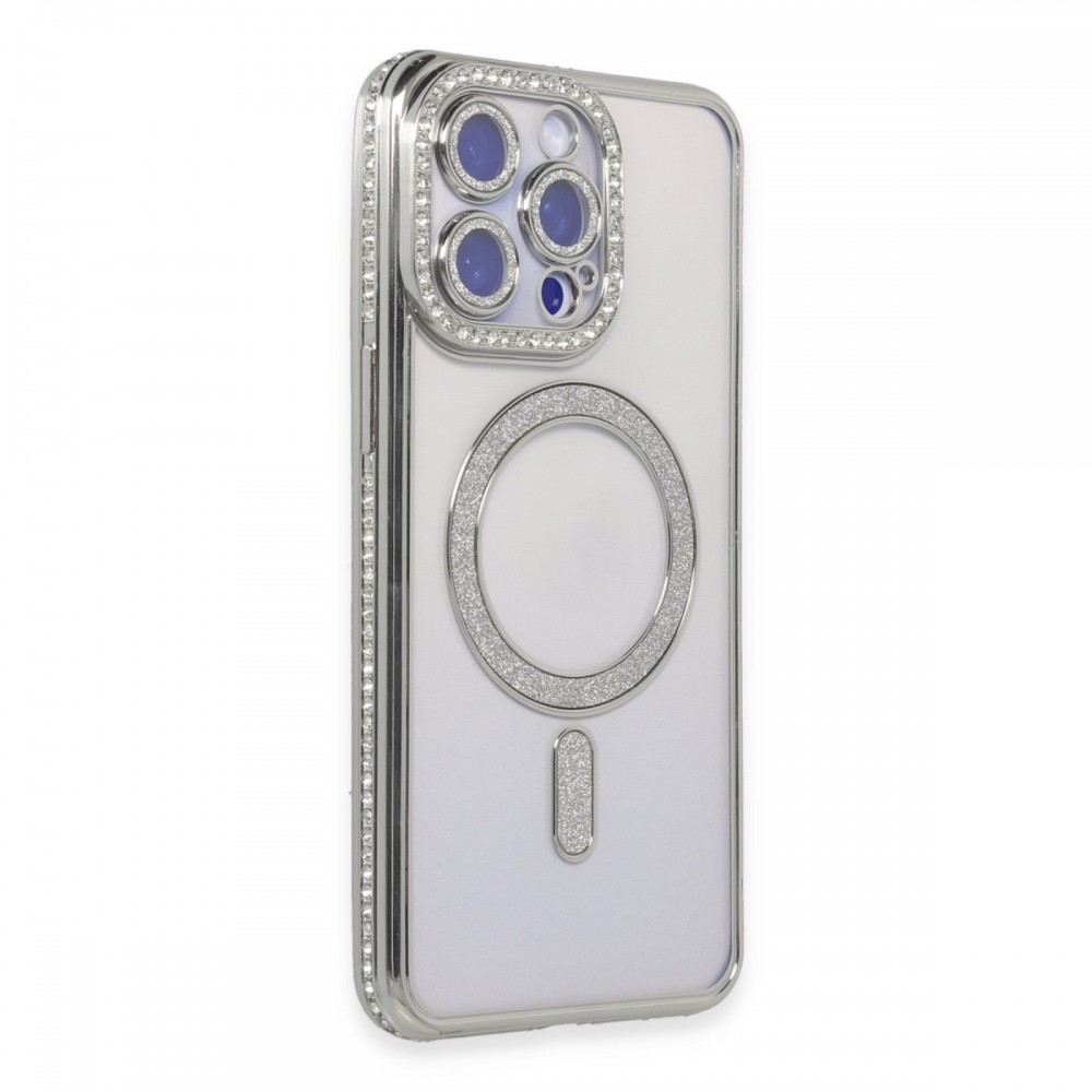 Joke Seri Magsafe Özellikli Taşlı Simli Silikon Kapak Simli ve Şık Tasarım MagSafe Uyumluluğu 360 Derece Tam Koruma Yükseltilmiş Kamera ve Ekran Koruması Parmak İzi ve Kaydırmaz Yüzey İnce ve Hafif Yapı Kablosuz Şarj Uyumlu