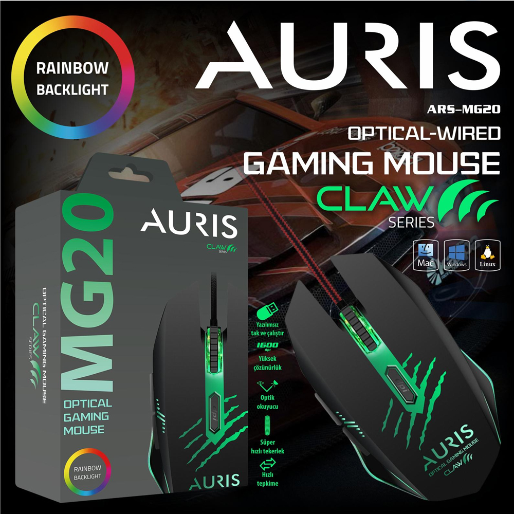 Auris MG20 RGB Optik Gaming Kablolu Mouse