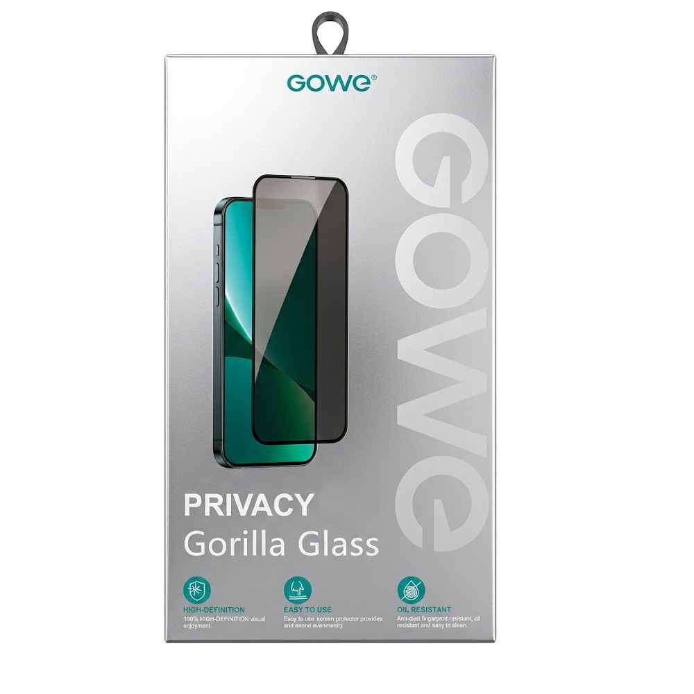 GOWE iPhone 14 Pro Max 45kg Darbeye Dayanıklı Hayalet Privacy Cam Ekran Koruyucu
