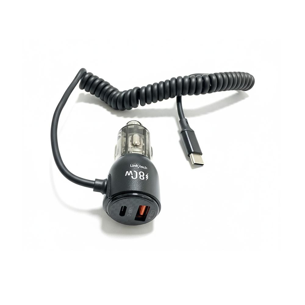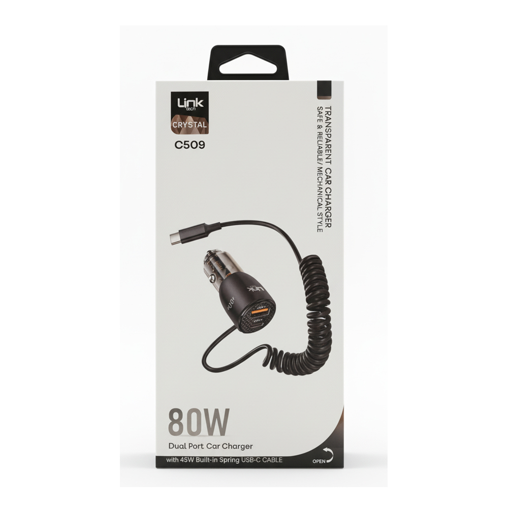 LinkTech C509 80W PD45W Sabit Kablolu + PD + USB-A Şeffaf Araç Şarj Aleti