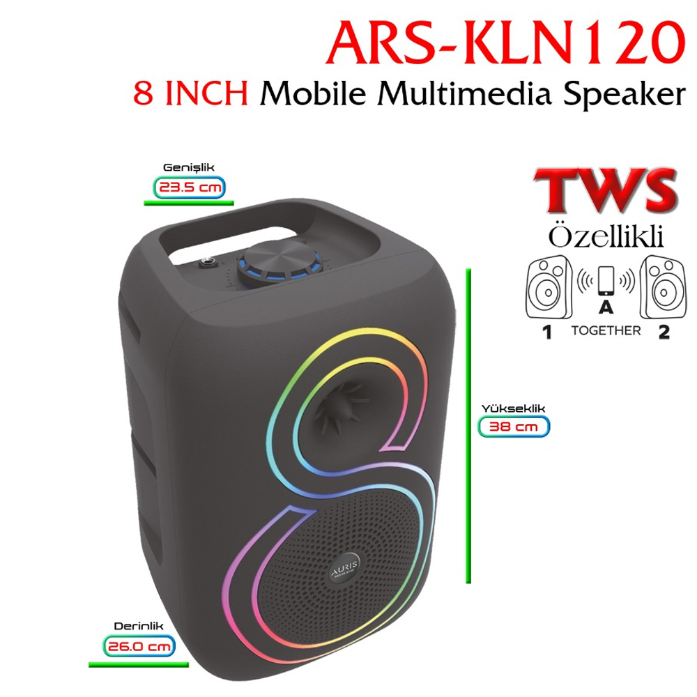 Auris KLN170 10W 8 inç RGB Kablosuz Mikrofonlu Taşınabilir Bluetooth Hoparlör Özellikler Bluetooth..
