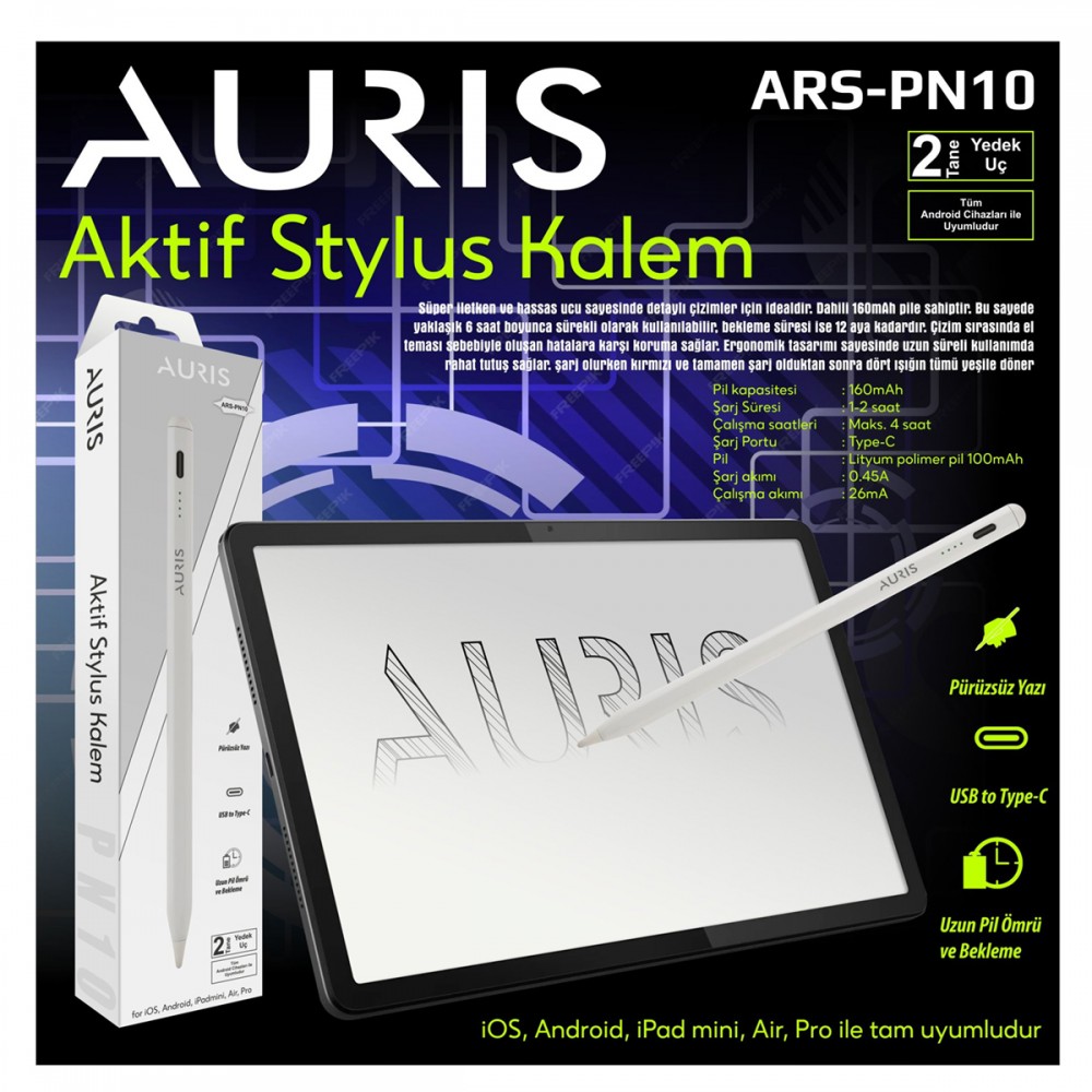 Auris PN10 Universal Stylus Pen, Aktif Dokunmatik Kalem