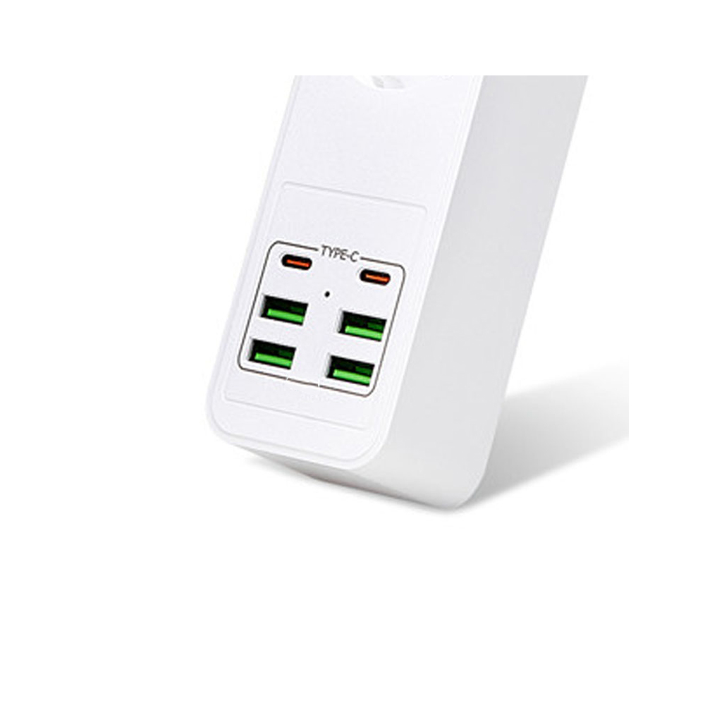 HEPU HP-H11 4x USB 2x Type-C 3lü 2mt Kablolu 18W Akım Korumalı Grup Priz 13000W