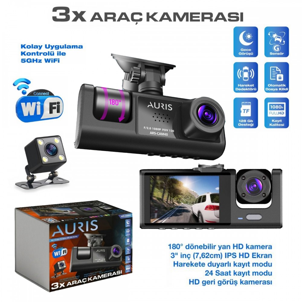 Auris CAM40 1080p Full HD 3X Ön & Arka Araç Kamera