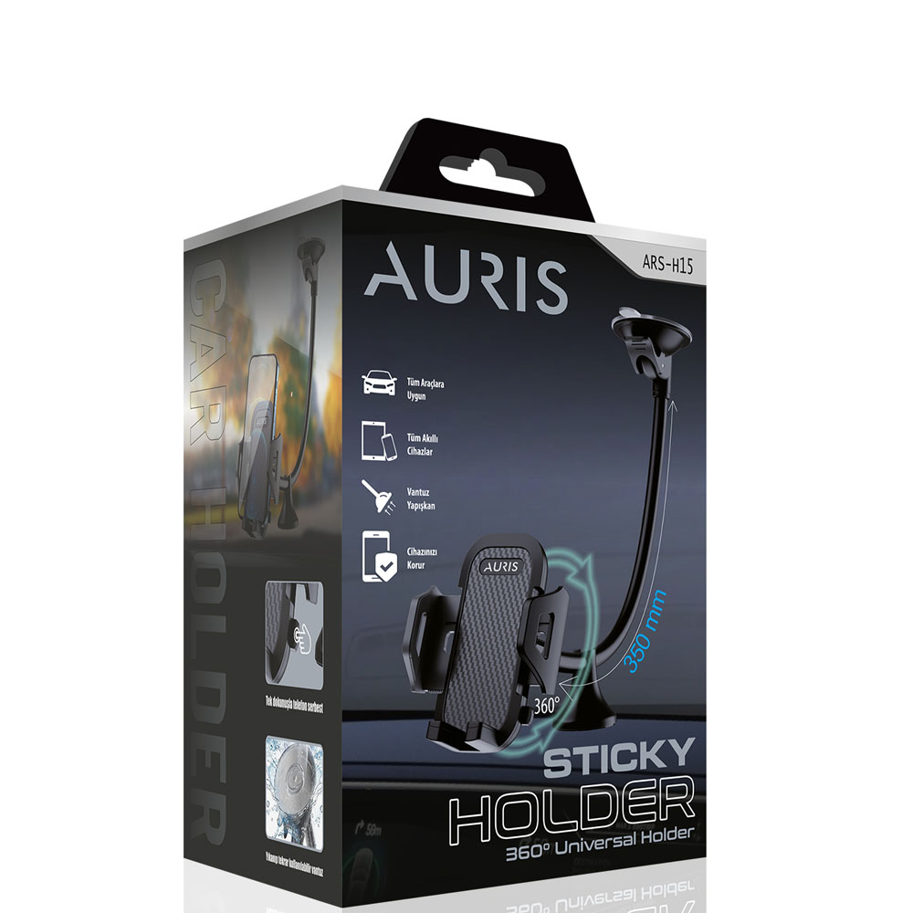 Auris H75 Akrobat Kollu Vantuzlu 360° Döner Araç İçi Telefon Tutucu Auris H75, eşsiz yenilikçi tasar..