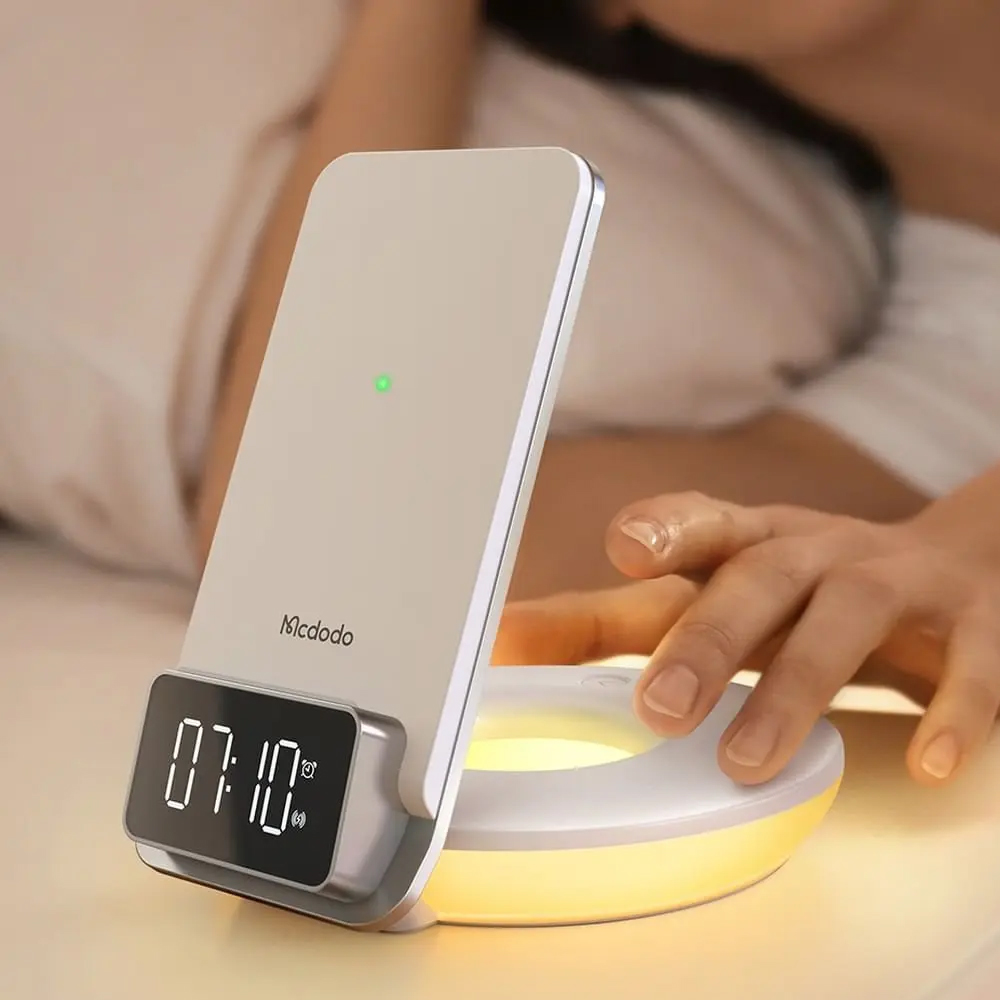 Mcdodo Türkiye olarak, inovasyonun ve modern tasarımın buluştuğu CH-1610 model kablosuz masaüstü şarj cihazıyla tanışın. Bu çok fonksiyonlu ürün; şarj, sehpa, saat ve gece lambası işlevlerini tek bir cihazda birleştirerek günlük yaşamınızı kolaylaştırmak için özenle tasarlandı. Mcdodo CH-1610 ile işlevselliği ve modern teknolojiyi bir arada deneyimleyin. Hem ev hem de ofis kullanımına uygun bu kablosuz şarj cihazı, günlük yaşamınıza konfor katacak; şarj etme, aydınlatma ve düzenleme ihtiyaçlarınızı tek bir cihazda toplamanıza olanak tanıyacak!Mcdodo CH-1610 15W 4'ü 1 Arada Kablosuz Masaüstü Şarj Cihazı - Beyaz